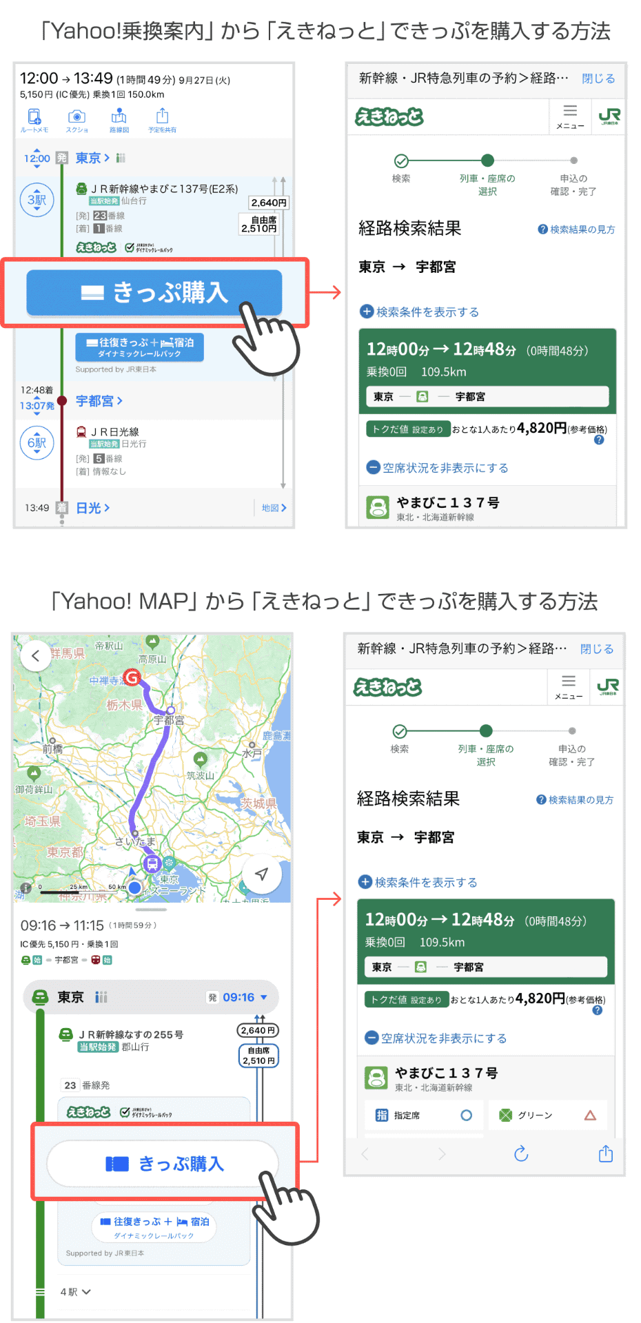 「Yahoo!乗換案内」と「Yahoo! MAP」が「エクスプレス予約」「スマートEX」と連携、新幹線チケットの予約・購入サービスが拡充
