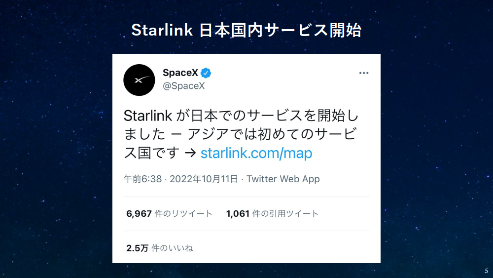 • 衛星通信「Starlink」、西日本からも契約可能に