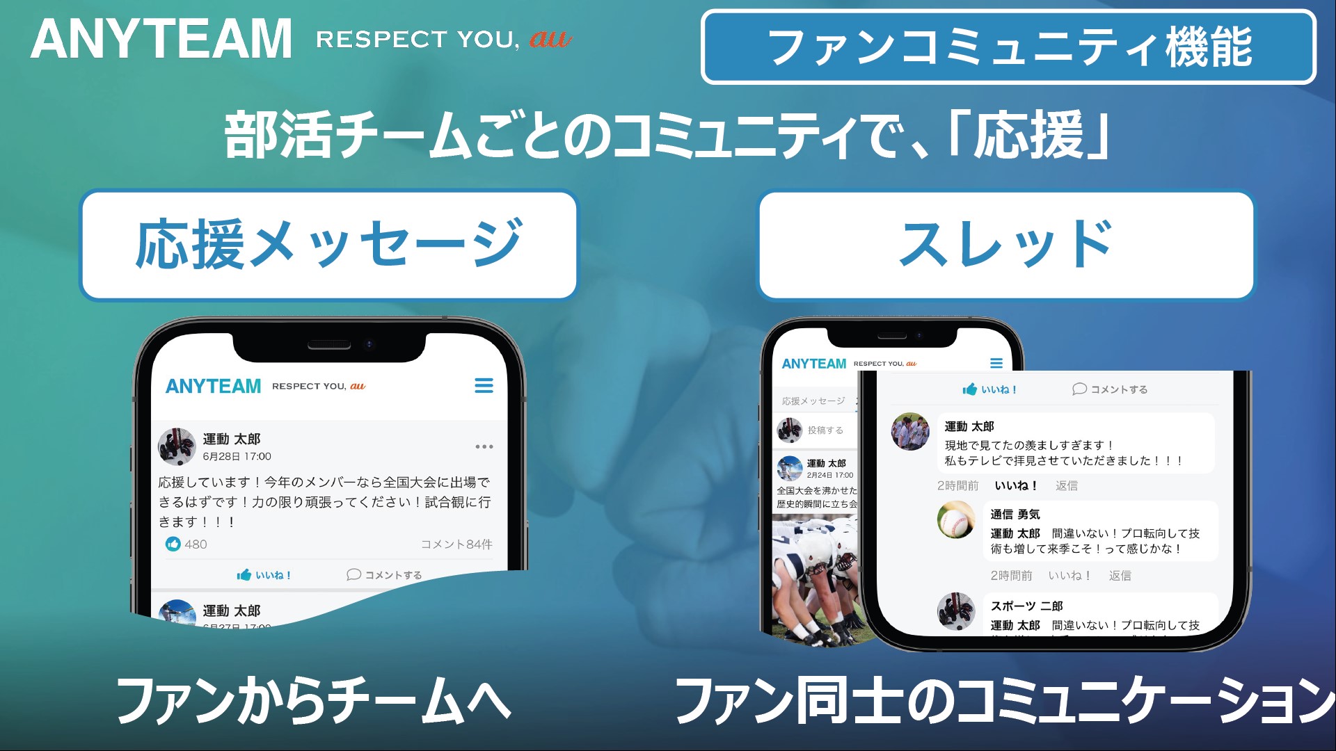 中学~大学の部活チームとファンが交流できる新サービス「ANYTEAM」、KDDIと運動通信社(3/25)