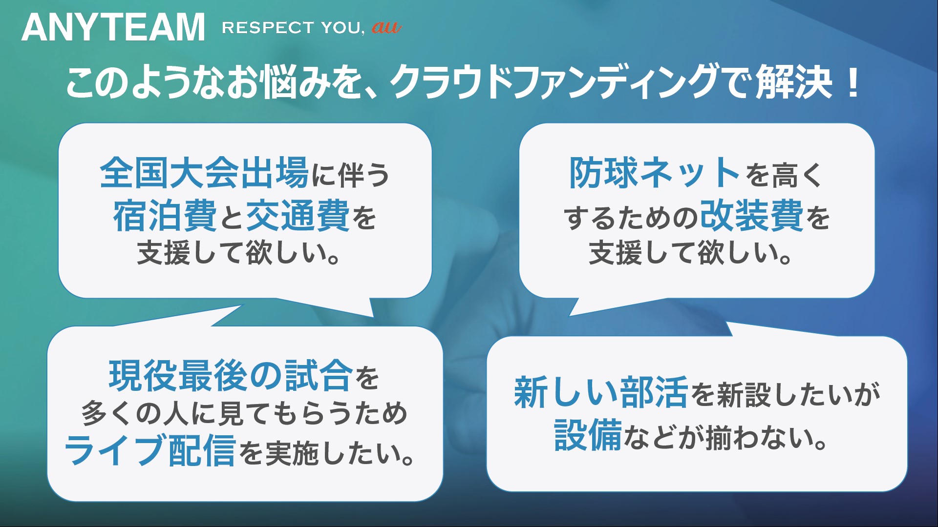 中学~大学の部活チームとファンが交流できる新サービス「ANYTEAM」、KDDIと運動通信社(8/25)