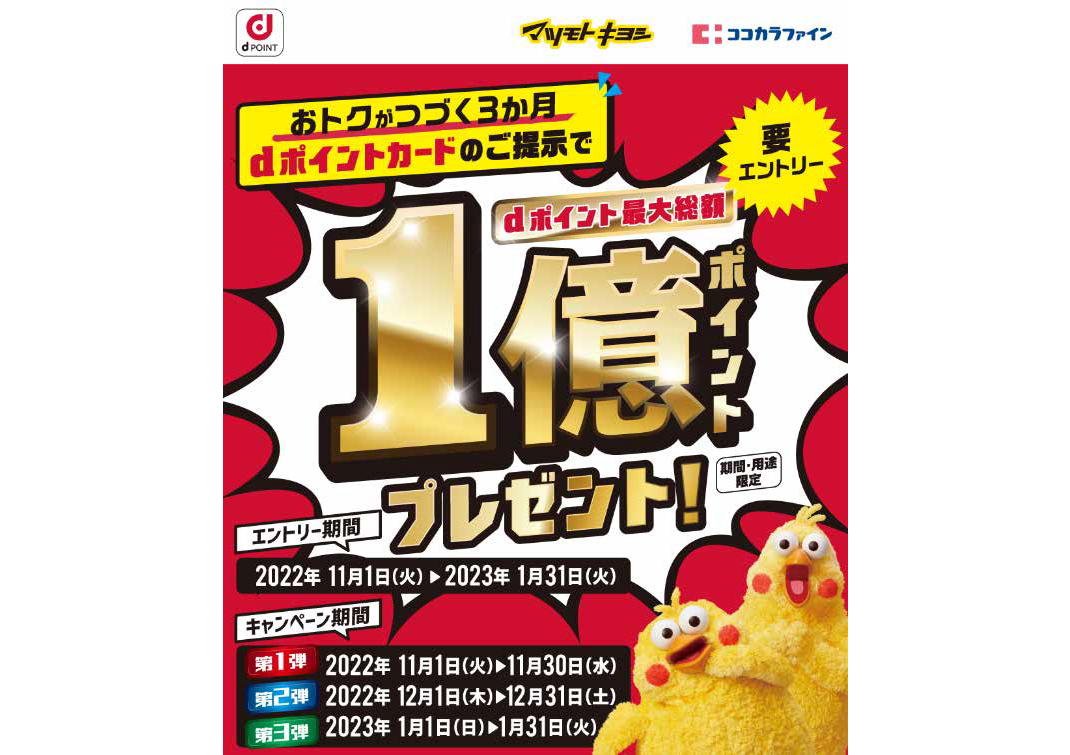 ココカラファインが「dポイント×ココカラポイント」の同時進呈に対応、11月から