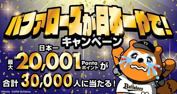 「Ponta」でバファローズ日本一記念キャンペーン、最大2万1ポイントやグッズが当たる