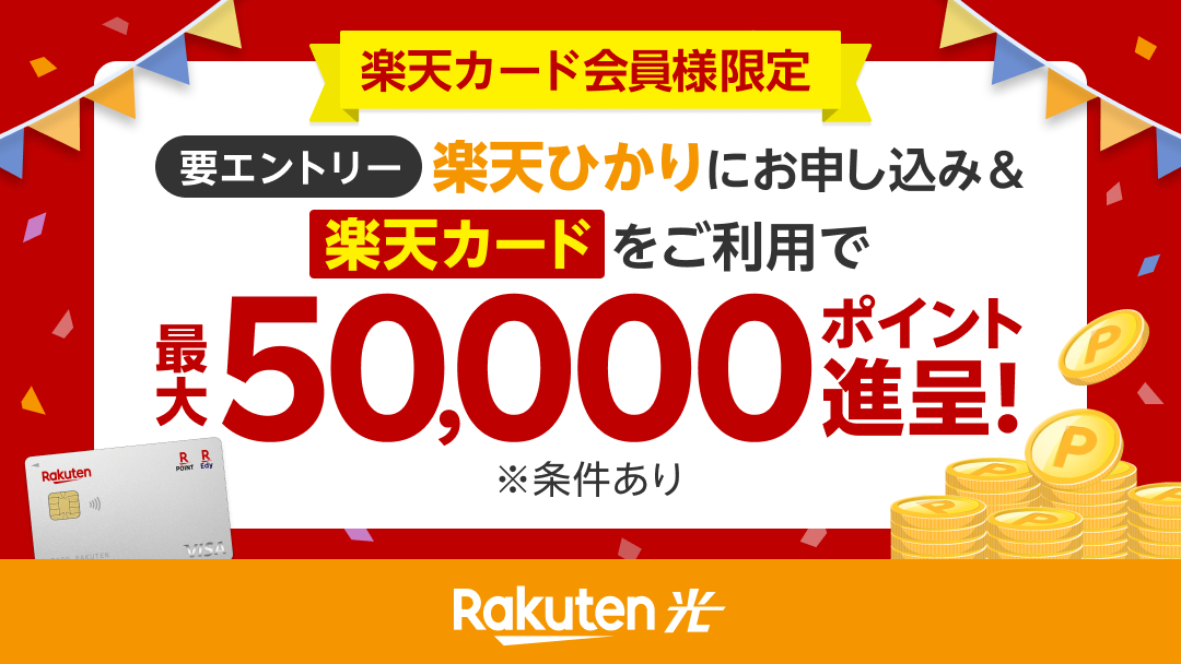 「楽天ひかり」申込みで「楽天市場」購入額の50%還元、11月末まで