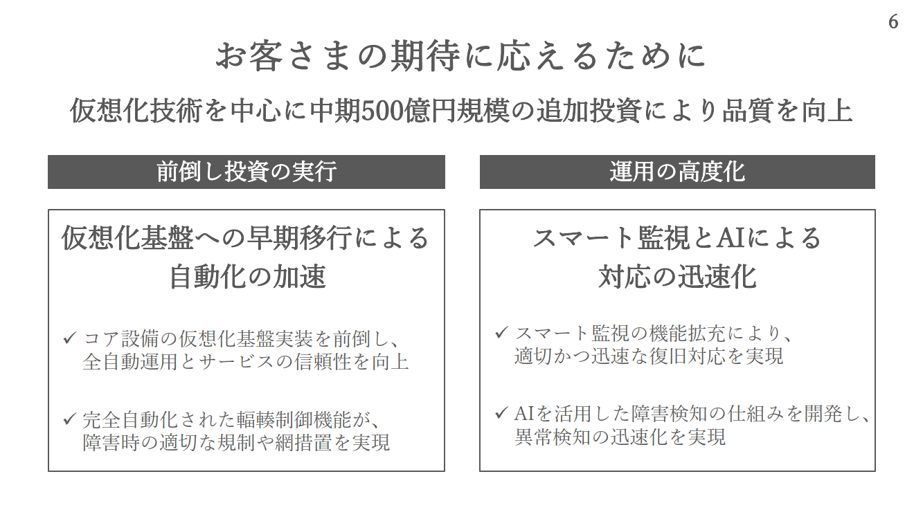 • KDDIが障害対策で500億円投資、「コア設備の全自動運用」や「AI検知」など導入へ