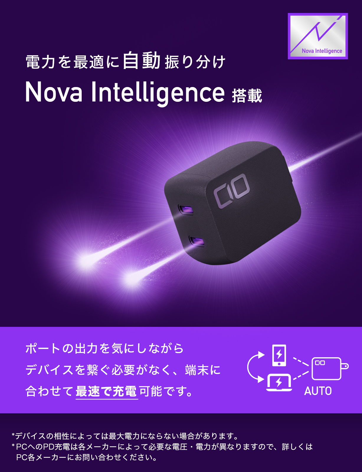 デバイスに合わせて最適な電力で充電する最大67Wの3ポート充電器、CIOから