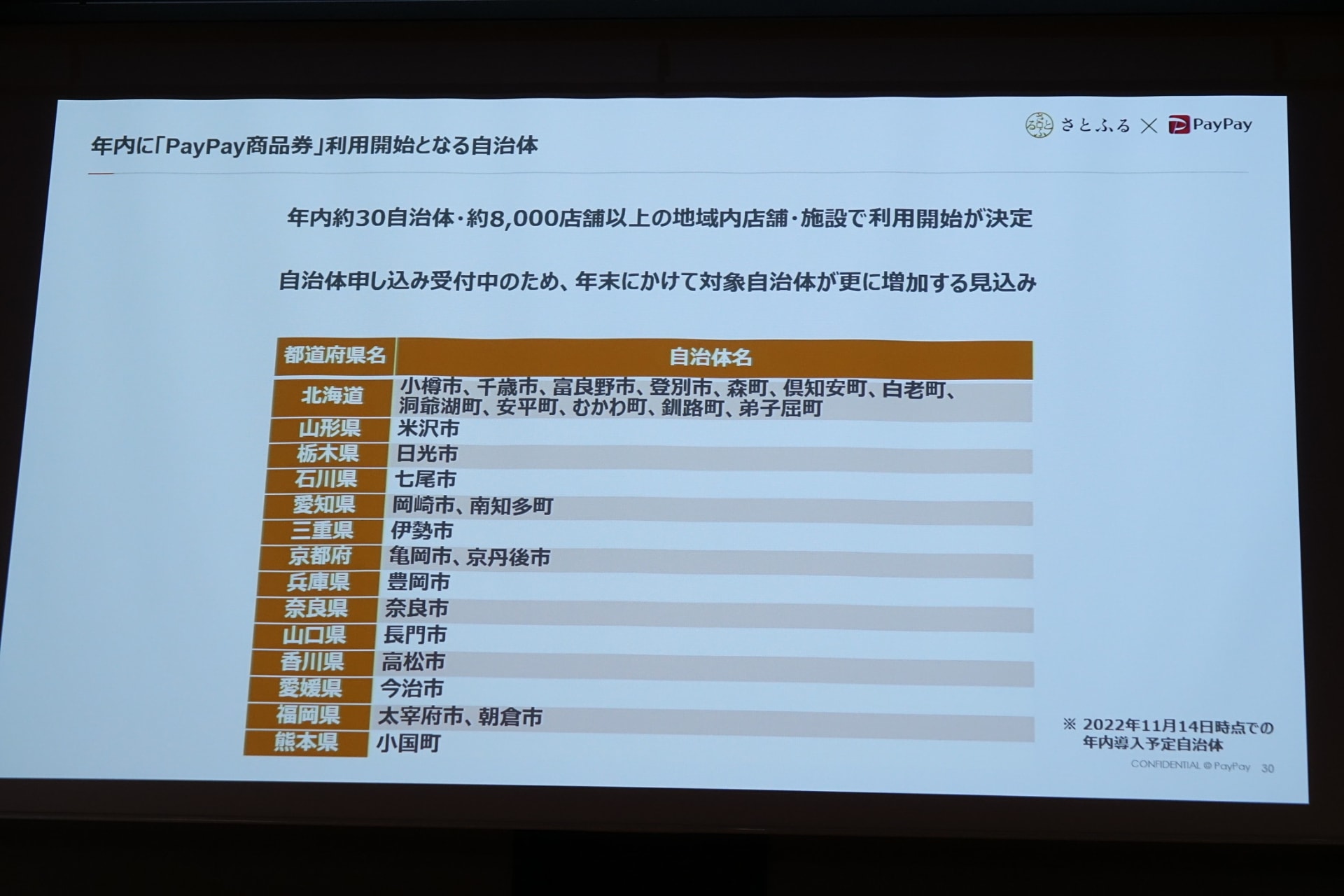 • 「PayPay」の「あなたのまちを応援プロジェクト」12月実施の追加分と23年1月以降のキャンペーンが決定、最大30%還元
