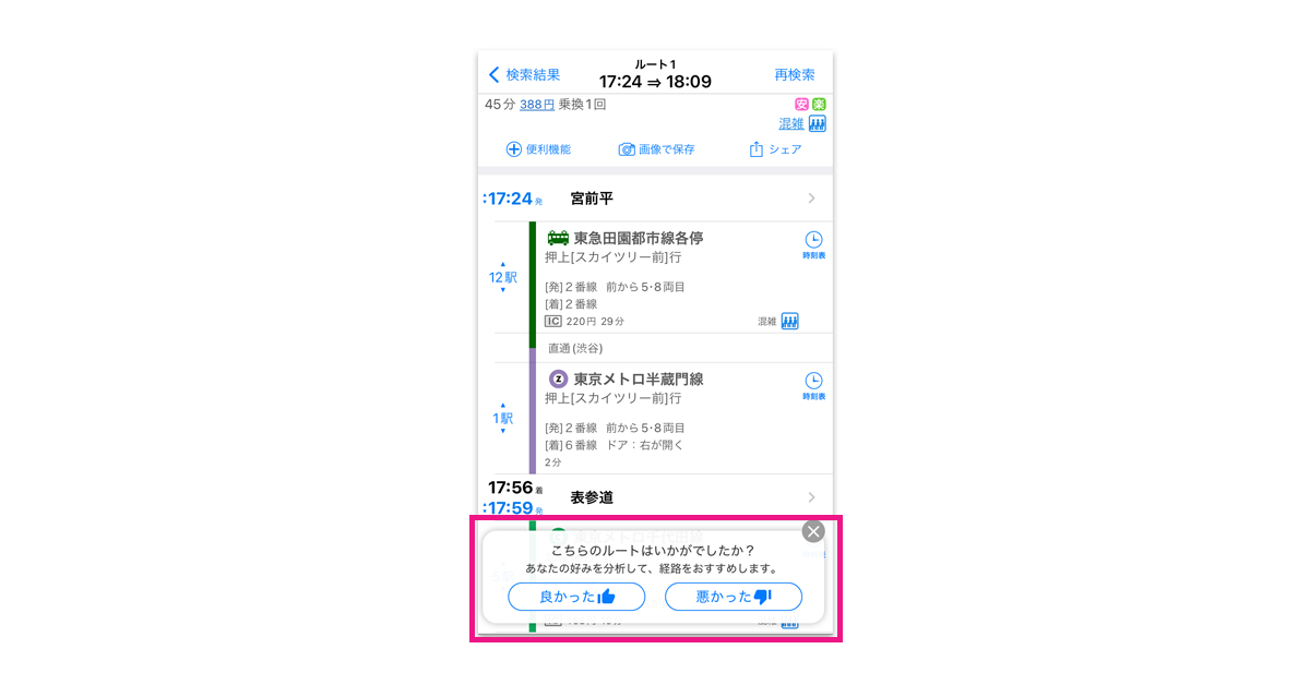 「乗換 NAVITIME」、ユーザーごとの好みに合わせる「あなたへのおすすめルート」