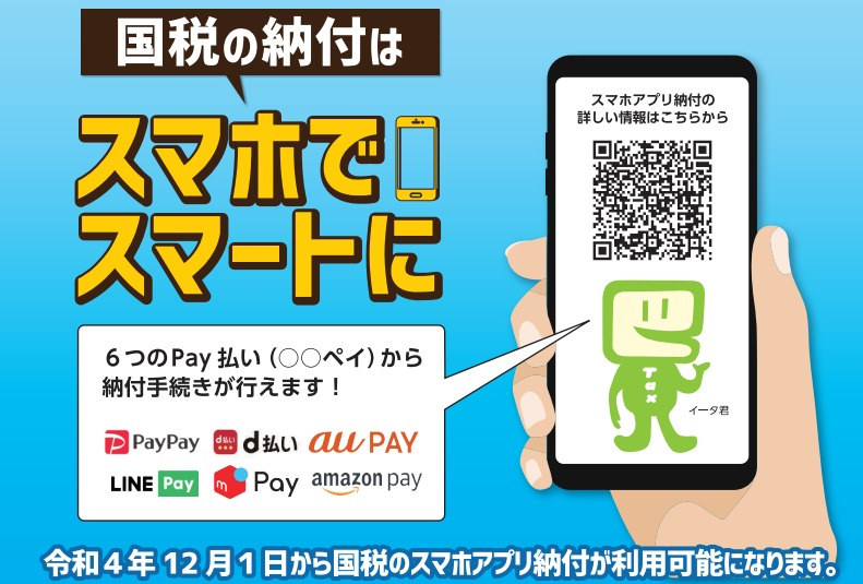 スマホ決済で税金(国税)納付できるように、本日12月1日から
