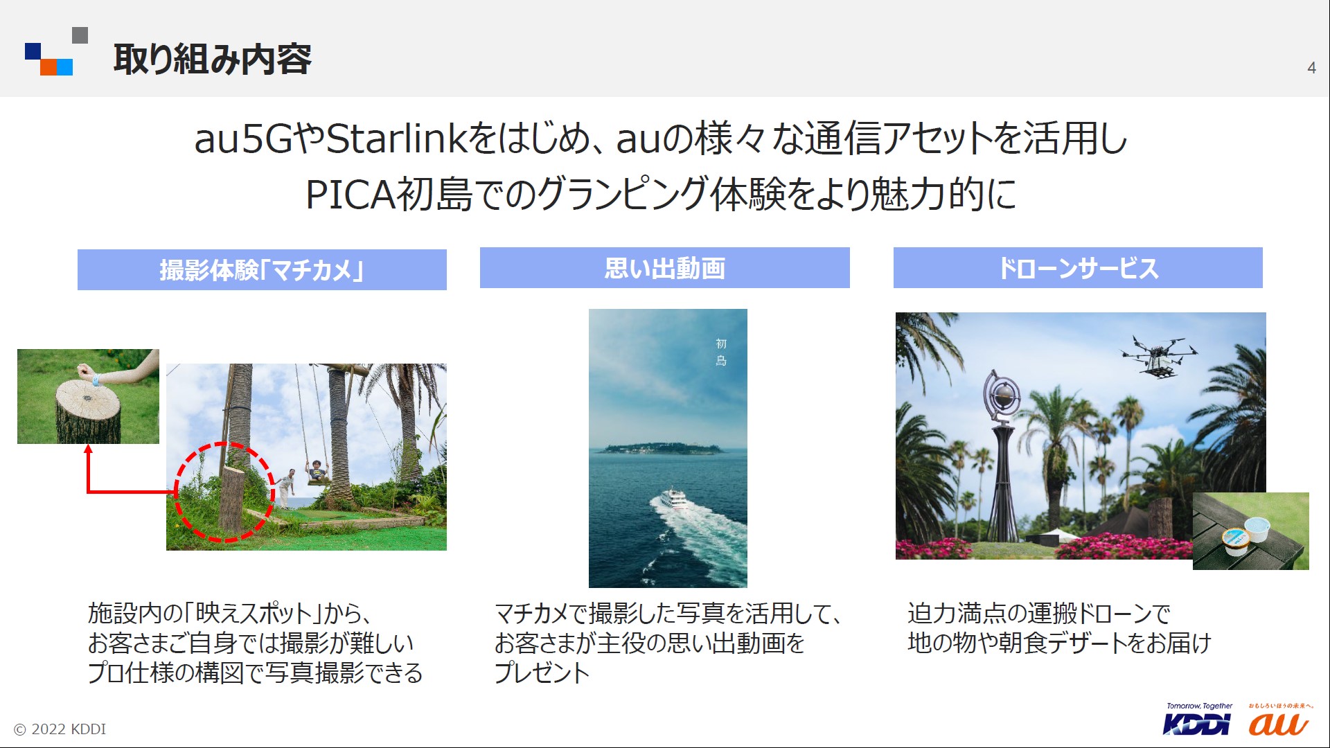 KDDIの技術で楽しむ初島の「グランピング」――デザート運ぶドローンやひとりでも“映え写真”の撮影など(4/23)