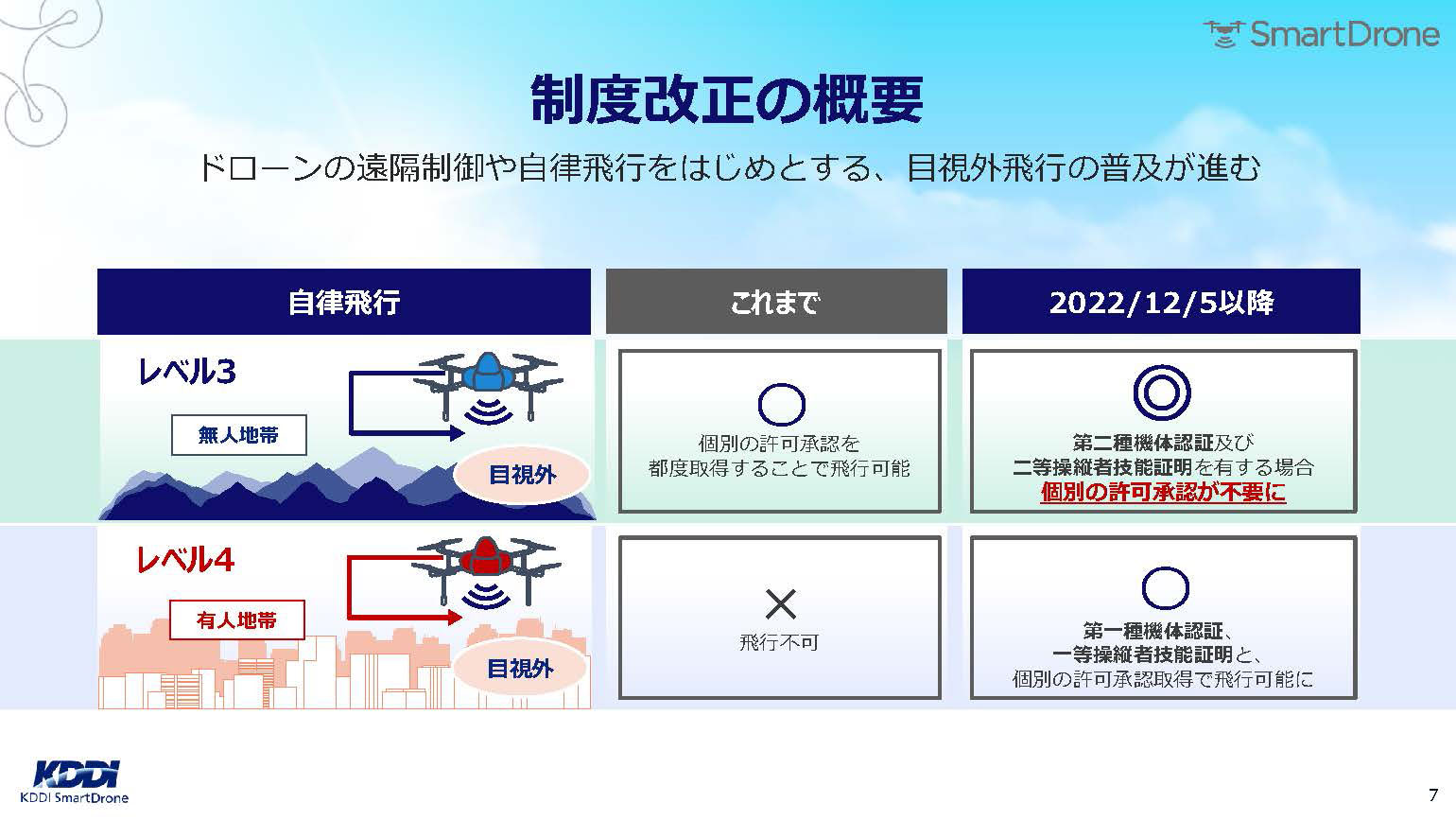 • 本日12月5日から改正航空法が施行、有人地帯でのドローンの目視外飛行が可能に