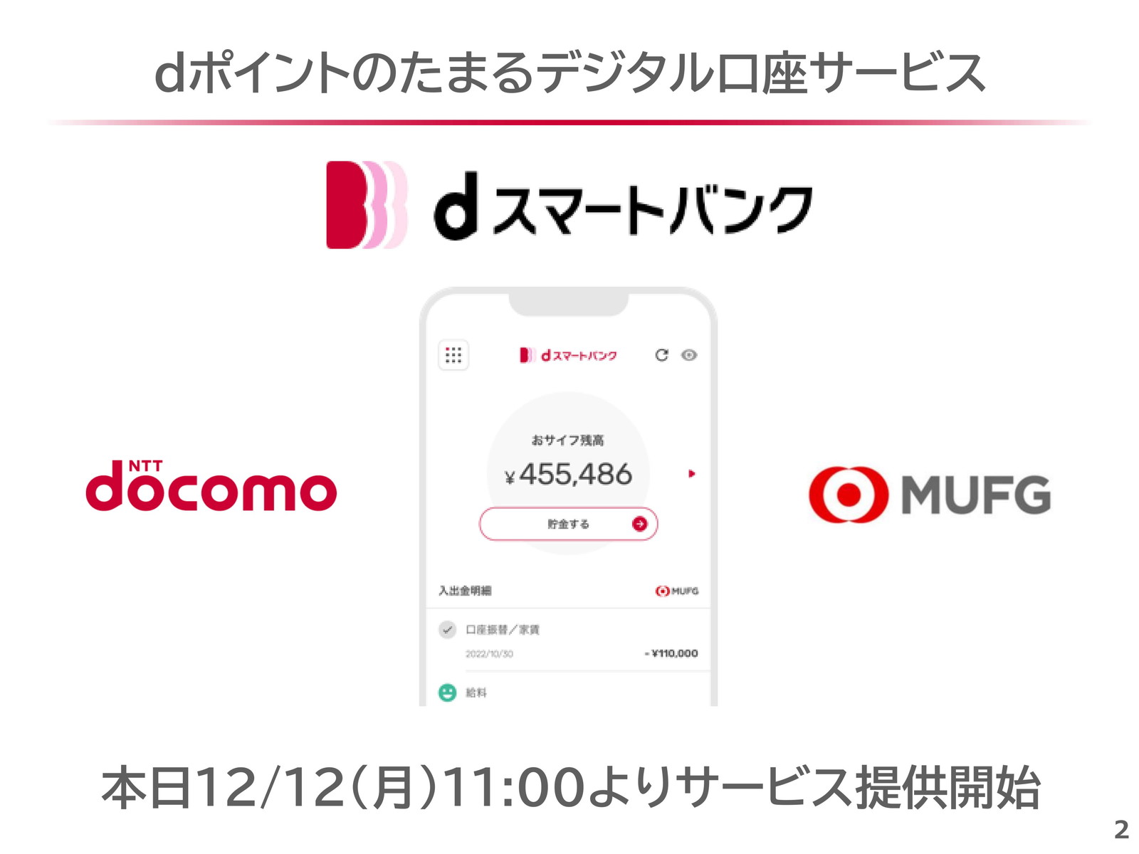 ドコモから「dスマートバンク」、dポイントが貯まるデジタル口座サービス(2/17)