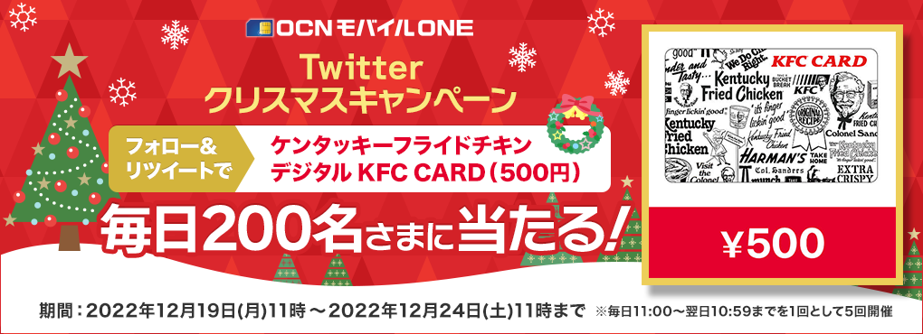 OCN モバイル ONE、Amazonギフト券があたるTwitterお年玉キャンペーン