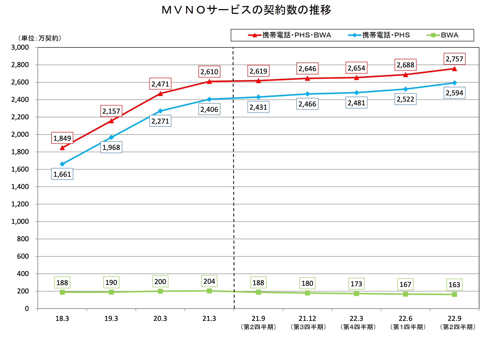 • 楽天モバイルのシェアは0.1ポイント減の2.2%、総務省調査