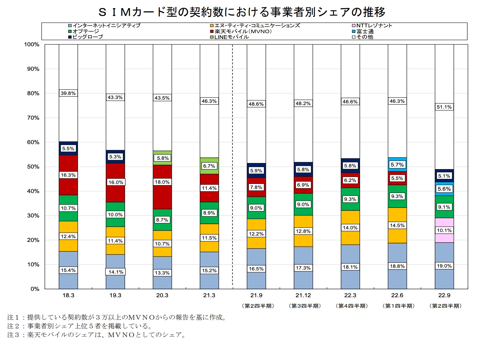 楽天モバイルのシェアは2.3%、MVNO内シェアはIIJが20%到達――総務省調査、6月末時点