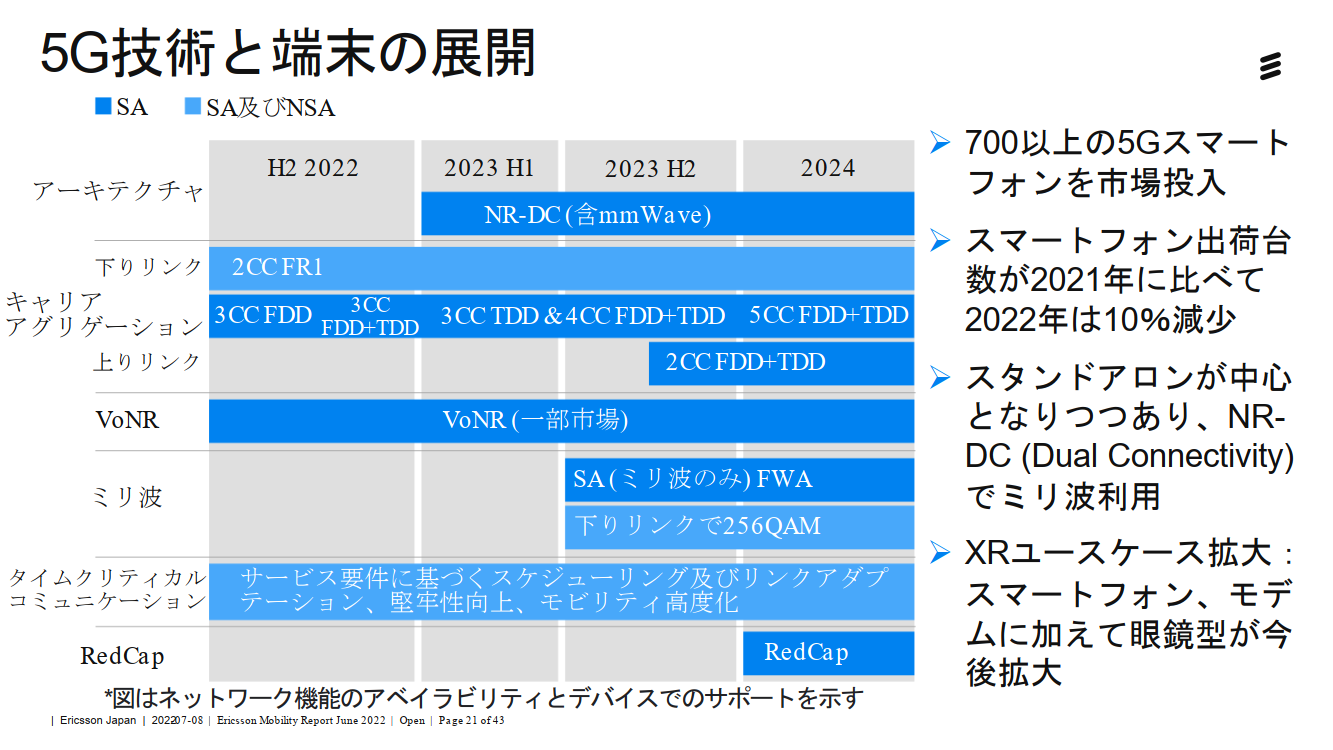 世界の5G契約数は22年末までに10億件超え、エリクソン・ジャパンのレポート(8/12)