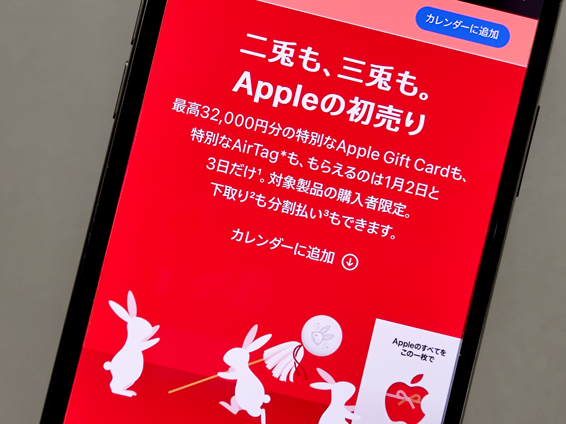 アップルの初売り始まる、特別デザインのギフトカードやうさぎのAirTagもらえる