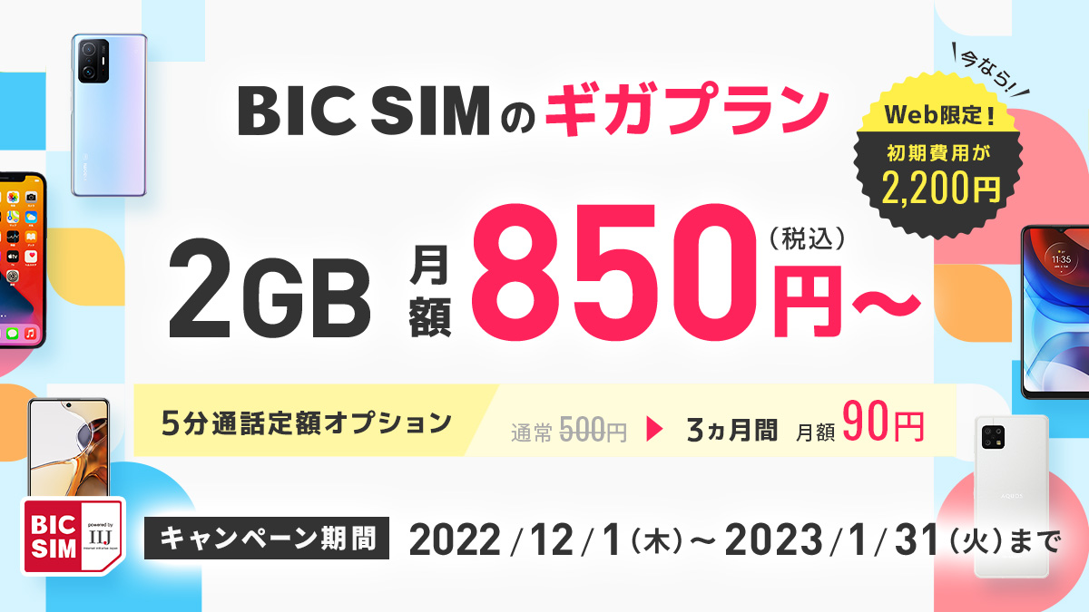 「BIC SIM」を店頭申込で最大1万4000ポイントがもらえるキャンペーン、通話定額オプション割引も