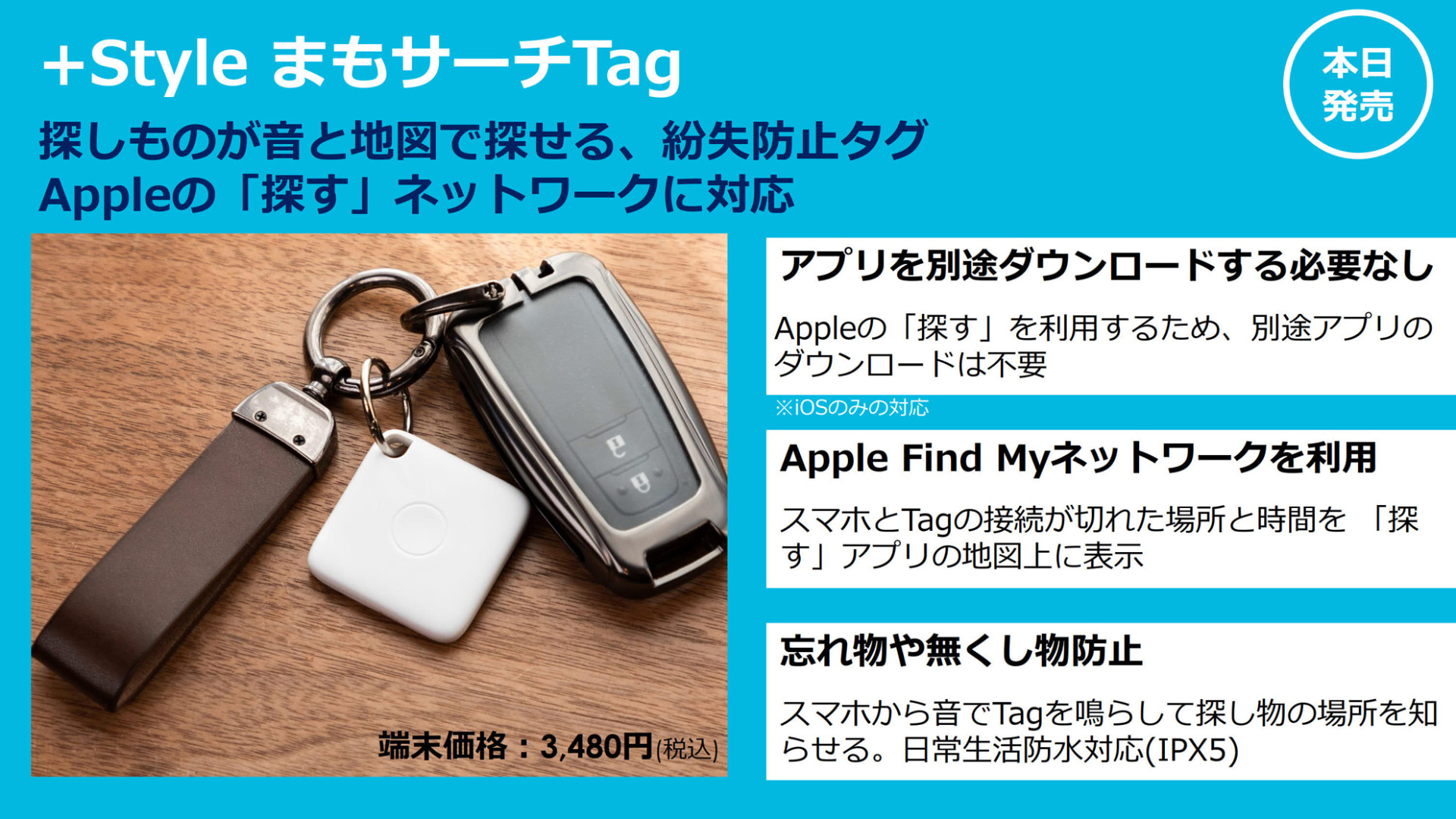 • iPhoneの「探す」アプリ対応「+Style まもサーチ Tag」、3480円