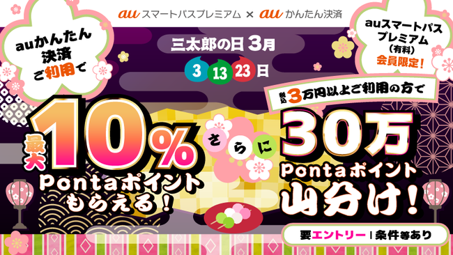 三太郎の日に「auかんたん決済」で最大1000ポイント還元、auスマプレ