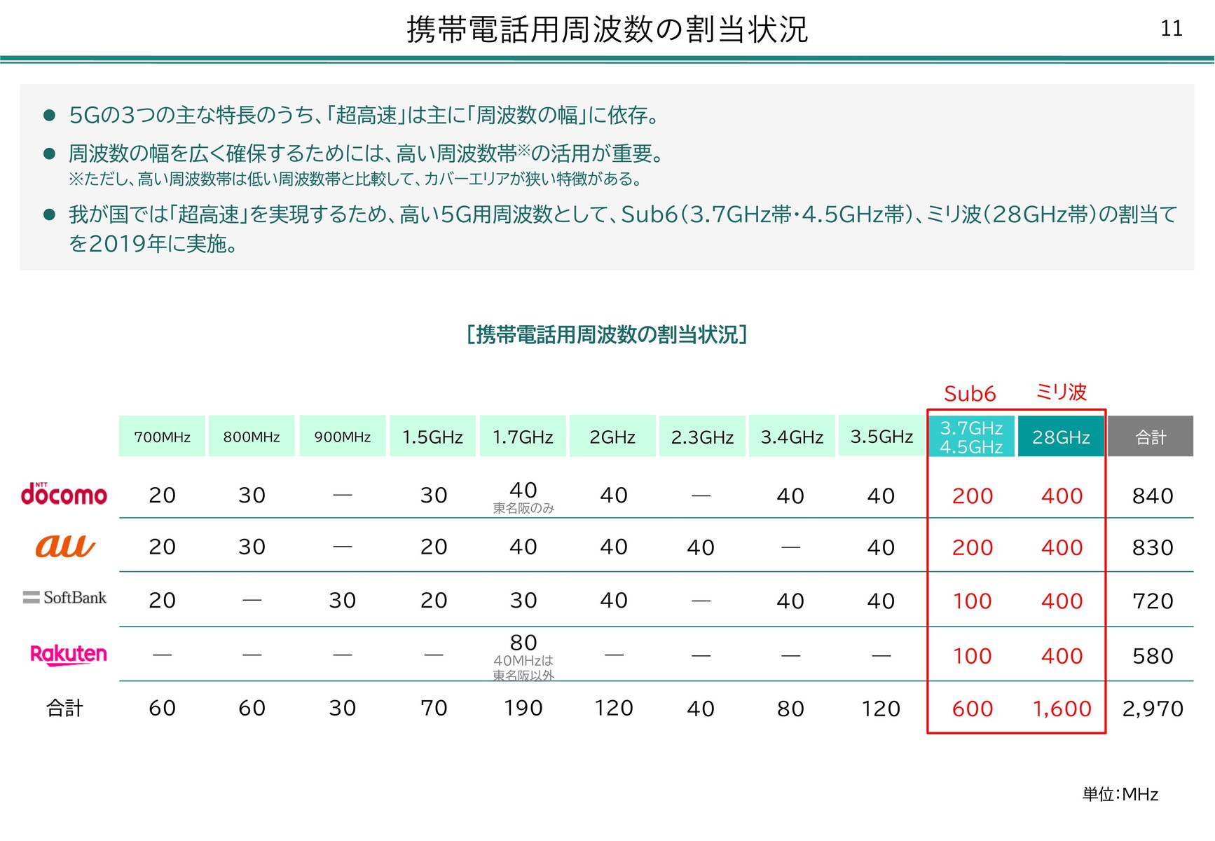 • 総務省が周波数の利用意向を調査、楽天が狙うプラチナバンドも対象