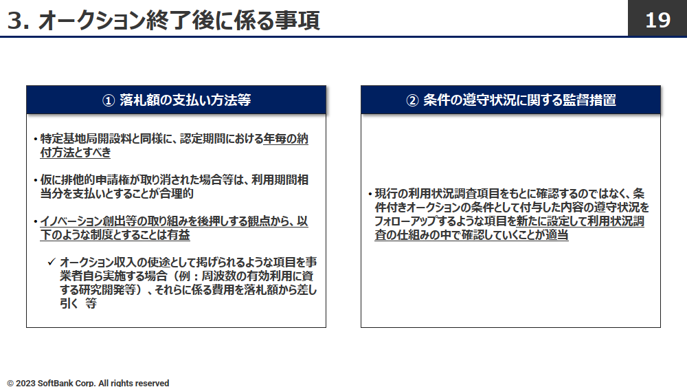 総務省の電波オークション検討会、ソフトバンクと楽天は「落札額の高騰」「周波数の一極集中」を懸念(14/20)