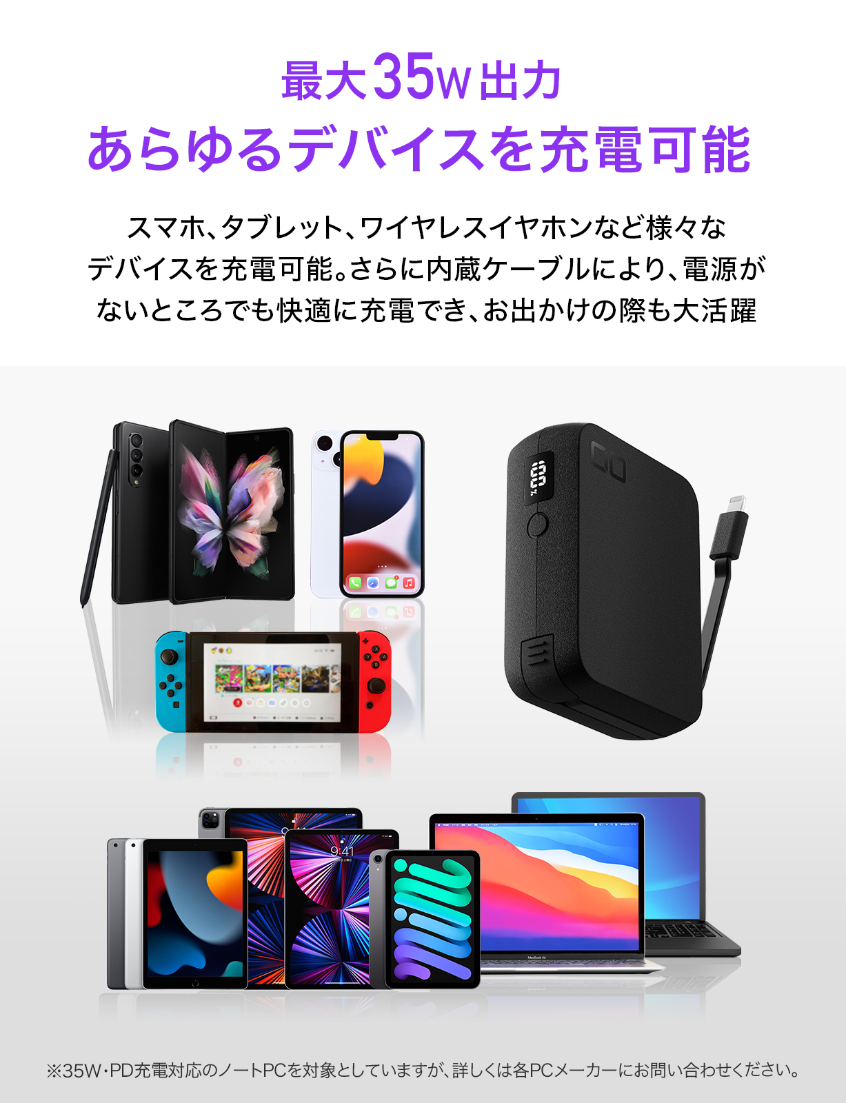 CIOからケーブル内蔵型モバイルバッテリー、35W出力(4/9)