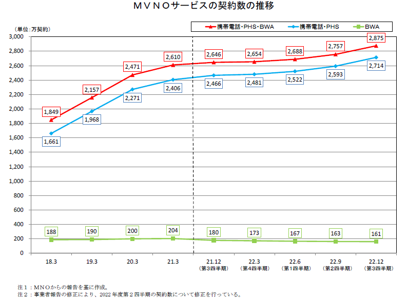 楽天モバイルのシェアは0.1ポイント減の2.2%、総務省調査(5/6)