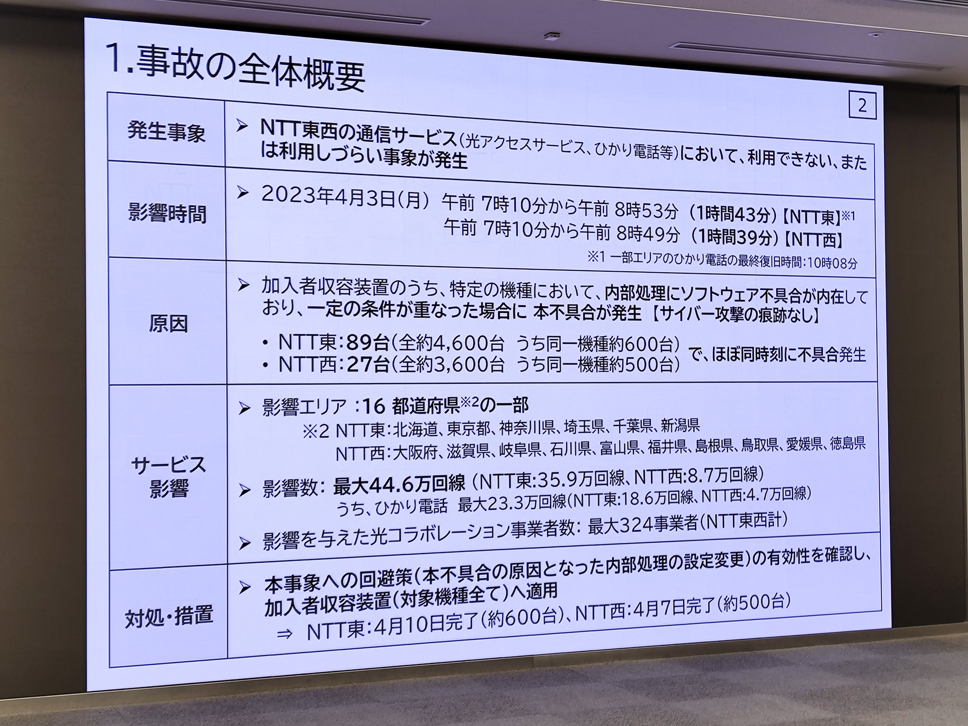 NTT東西の障害は「同じメーカーの装置」でのみ発生、外部からの攻撃の可能性は低く