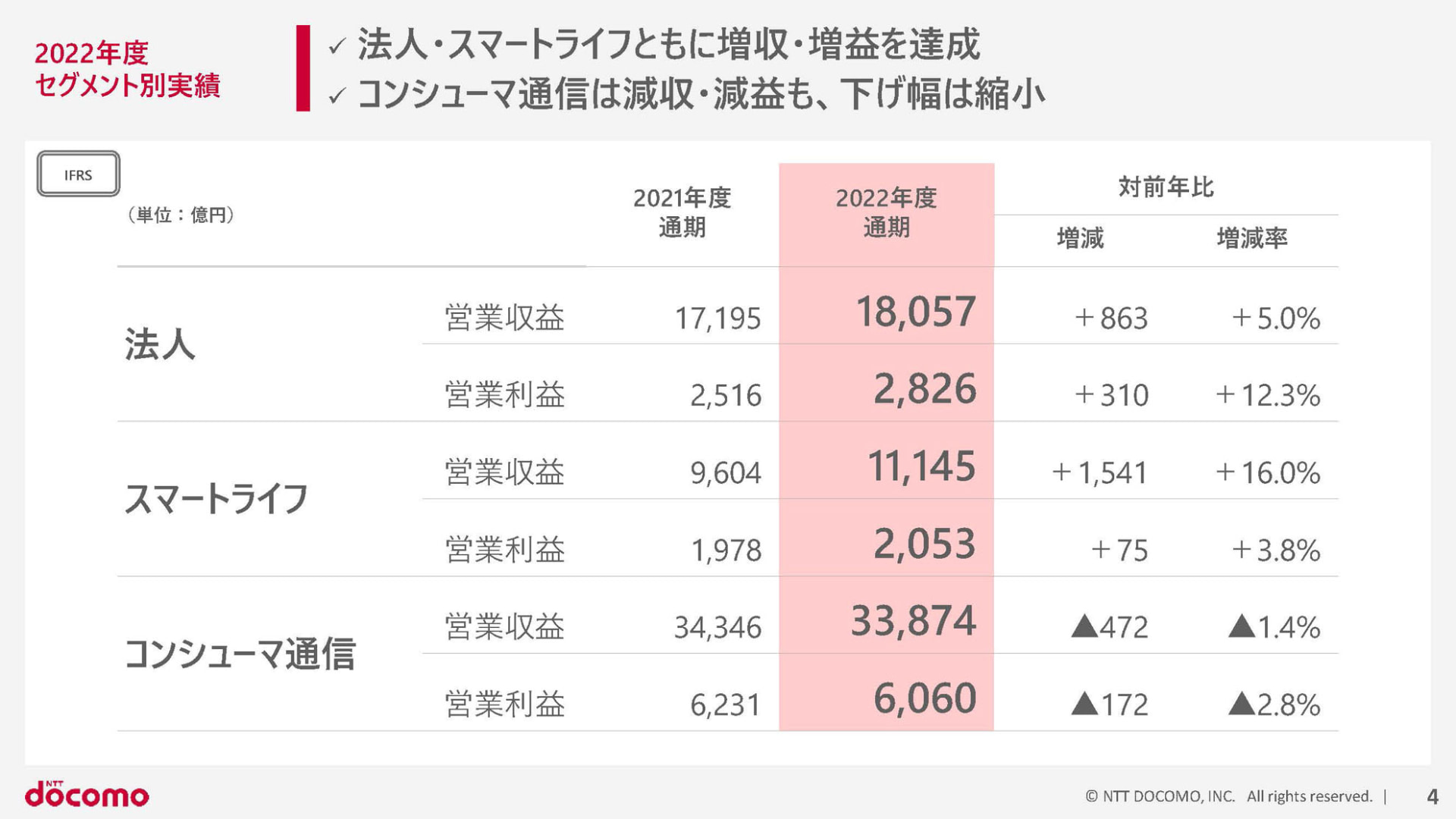 • NTTドコモの2023年度通期決算は増収増益、コンシューマー事業は前年よりやや減少