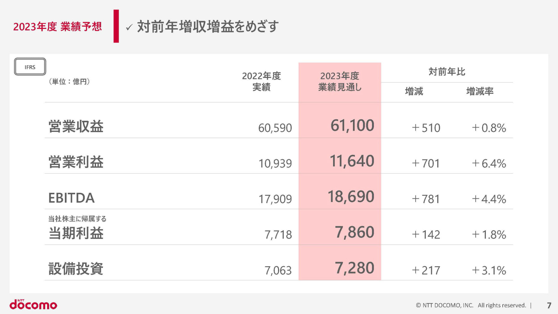 ドコモの22年度連結決算、収益は+3.2%の6兆590億円――通信料金値下げの影響は「底打ち」と予想(5/23)
