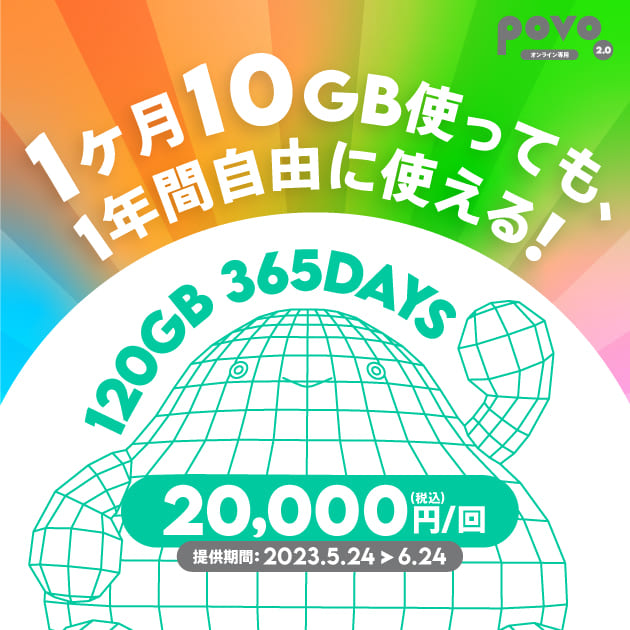 povoで「180GB/365日」の期間限定トッピング、MNPで8000円分還元も