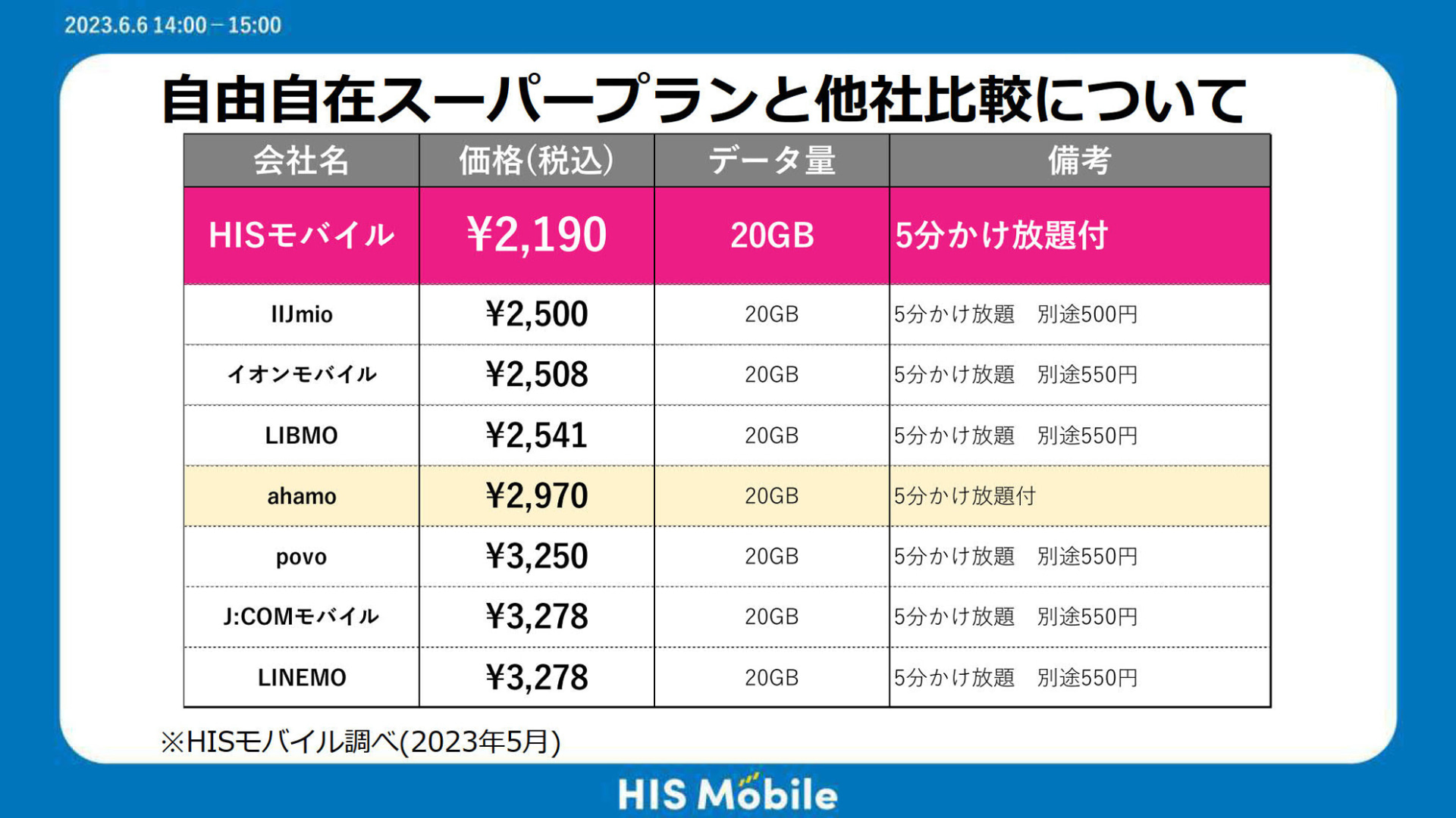 • HIS Mobile、20GB/2190円の新料金プラン「自由自在スーパープラン」提供スタート