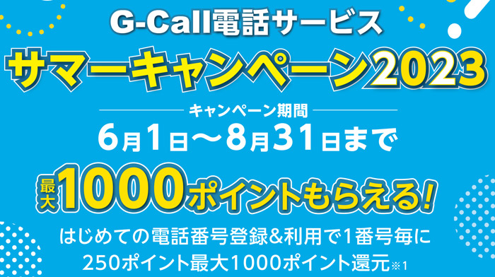「G-Call電話」、新規登録と利用でポイントもらえるキャンペーン