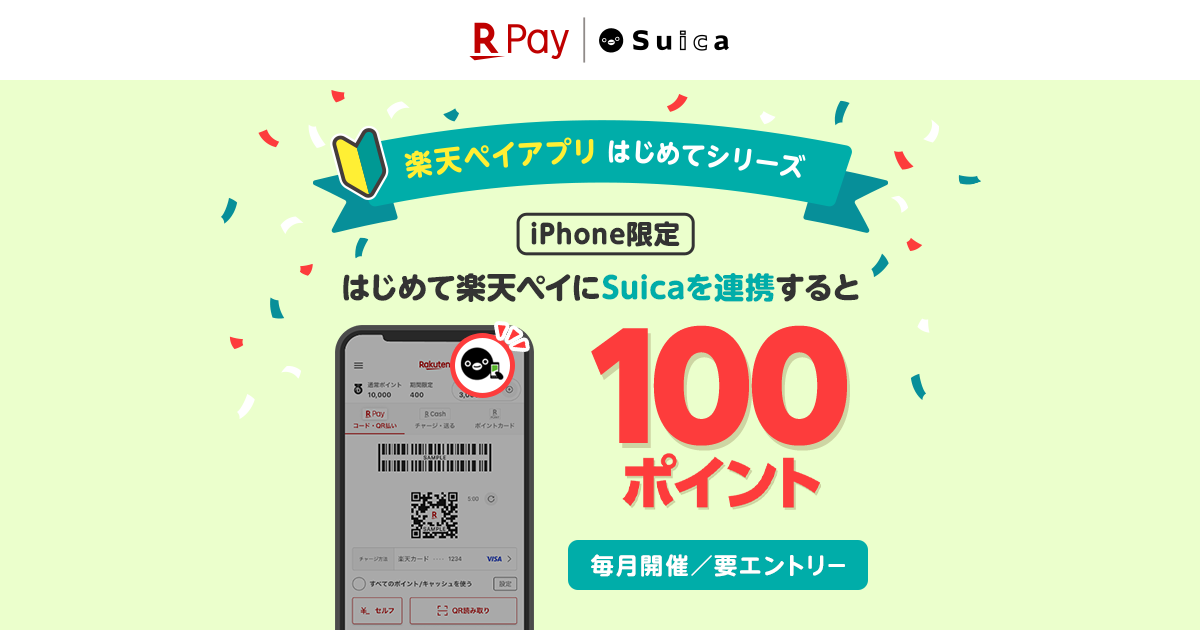 楽天ペイで「モバイルSuica」にチャージすると抽選で1万ポイントプレゼント