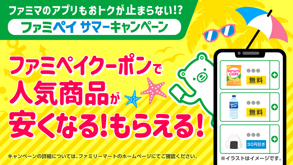 ファミマで「サマーキャンペーン」、アプリクーポンや無料引換券など