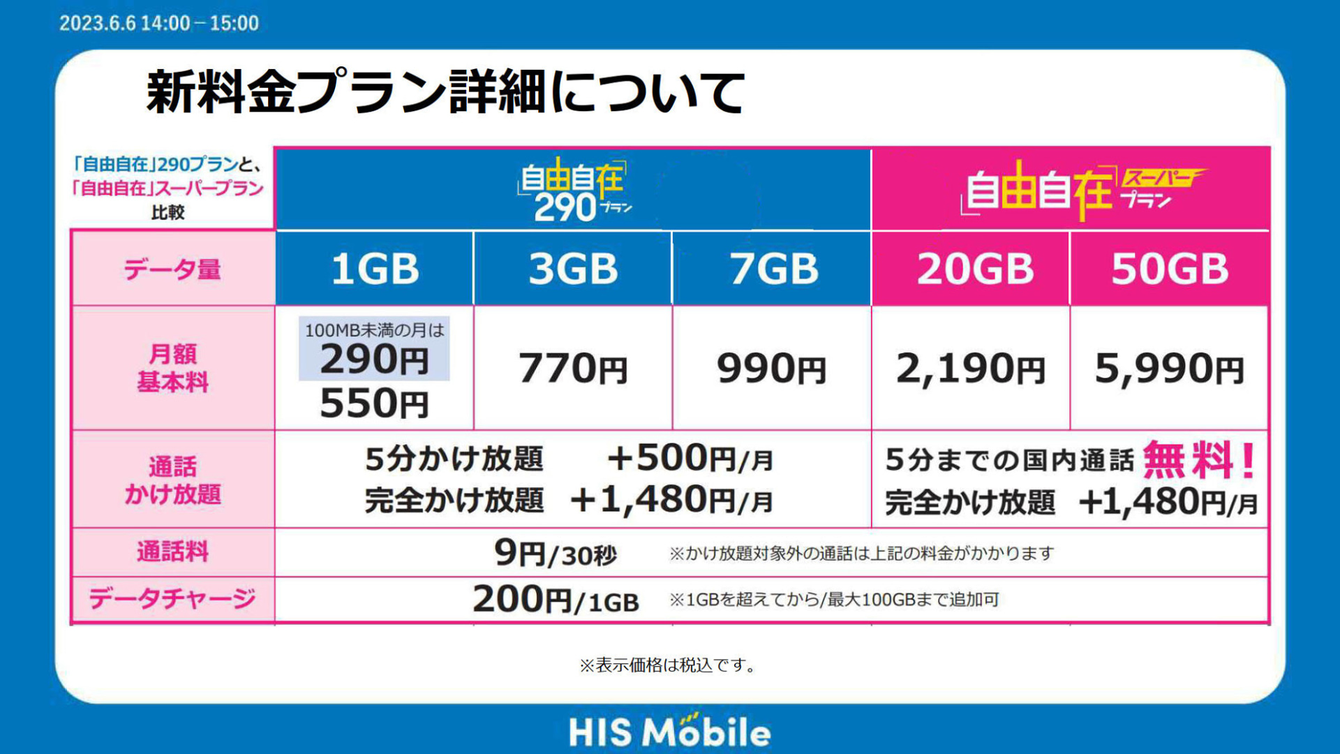 HIS Mobile、月100MB未満なら290円の新プラン「自由自在290」