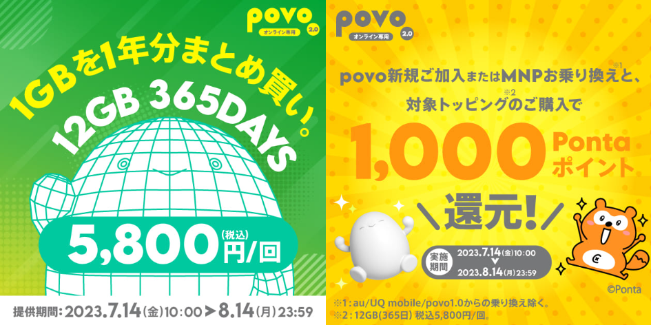 povoで「180GB/365日」の期間限定トッピング、MNPで8000円分還元も