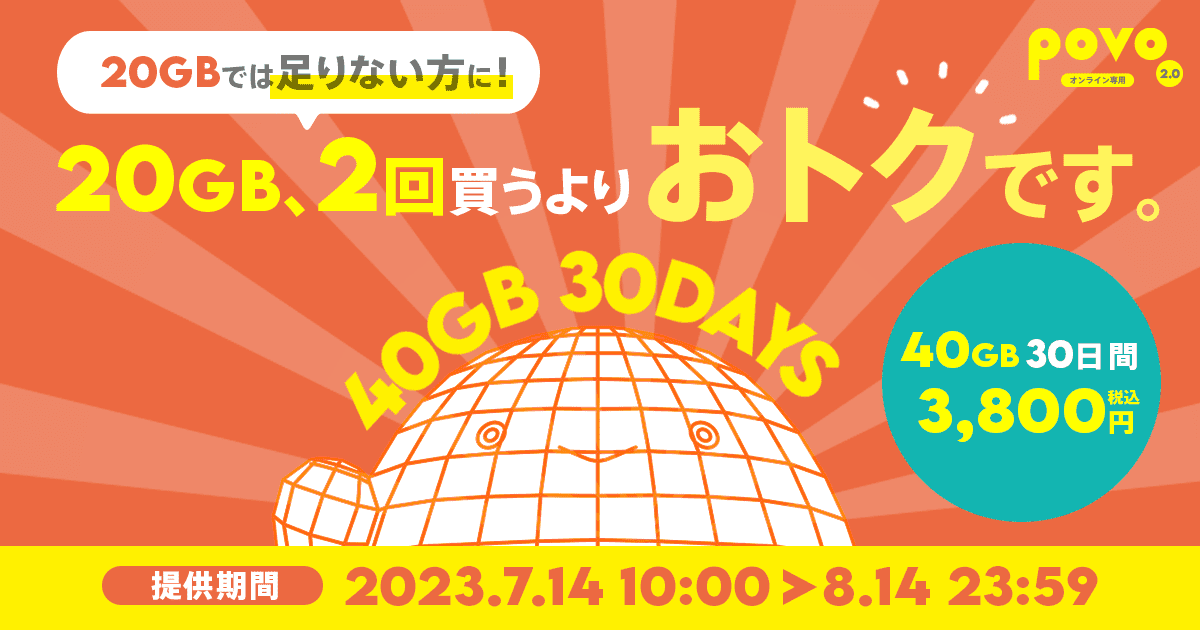 povoで「180GB/365日」の期間限定トッピング、MNPで8000円分還元も