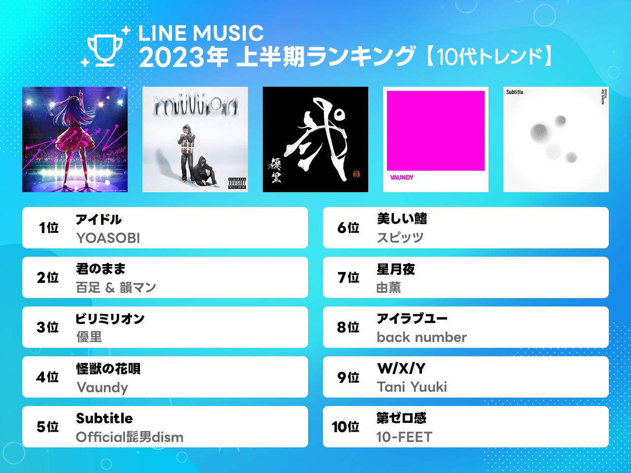 LINE MUSIC「2023年上半期総合ランキング」1位は「Subtitle」