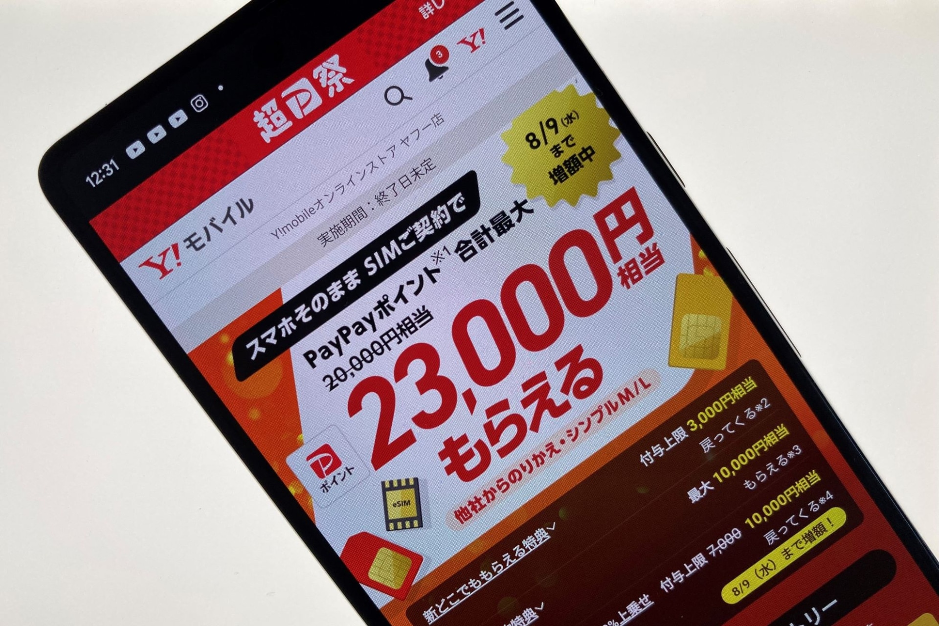ワイモバイルオンラインショップ、MNP転入でSIMのみ契約で1万円分のPayPayポイント――PayPayで20%還元キャンペーンも