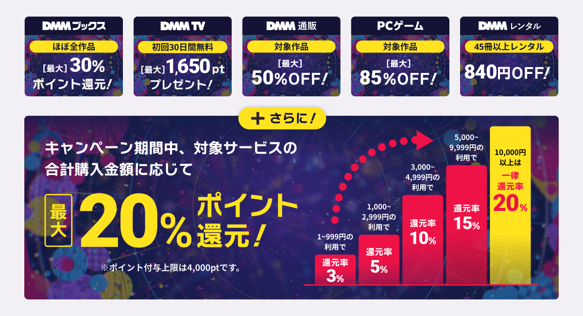 最大50%のポイント還元「DMMポイント大還元祭」第2弾 4日17時開始