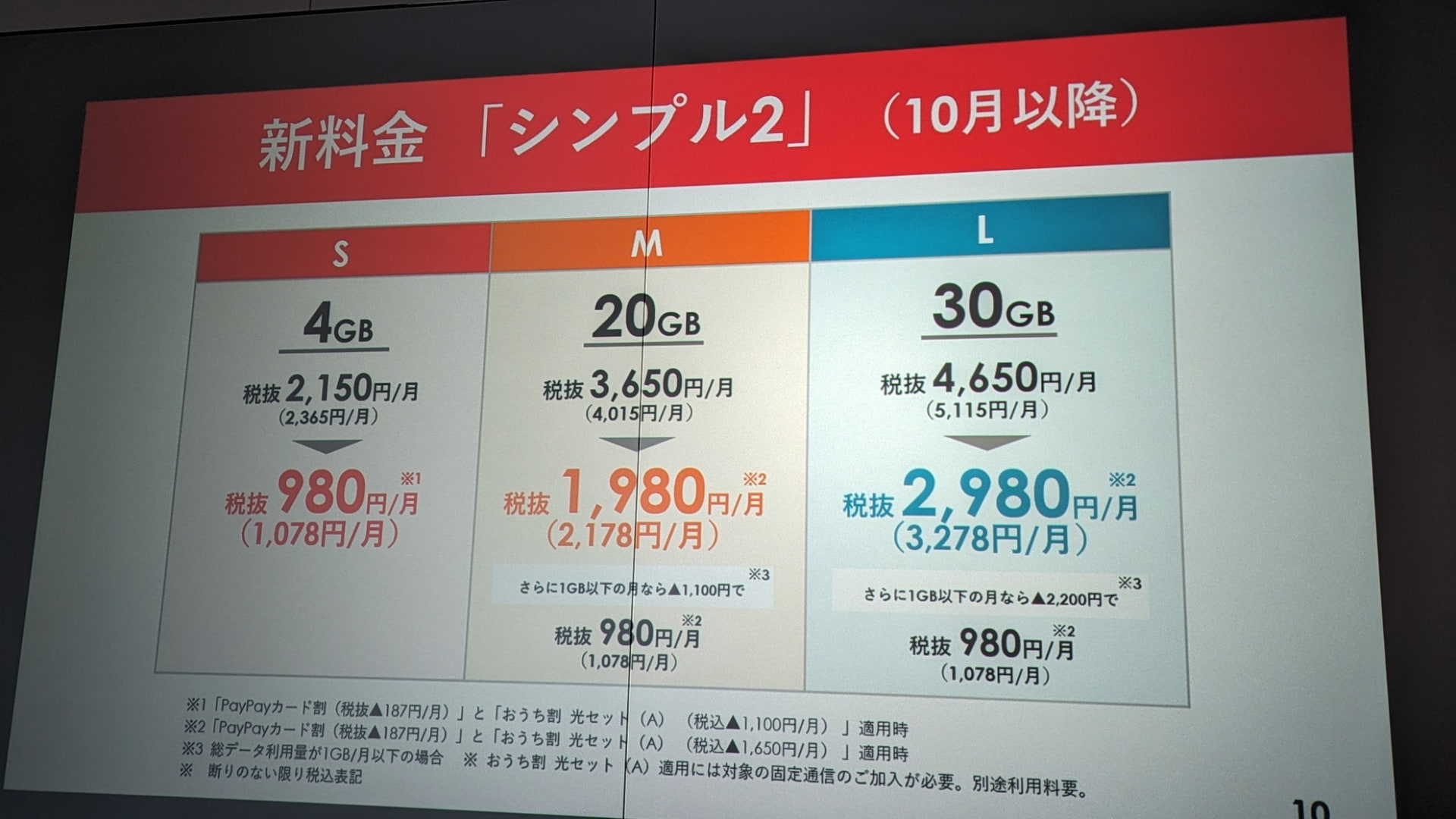 ワイモバイルの新料金「シンプル2 S/M/L」、10月3日提供開始