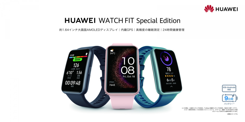 ファーウェイから「HUAWEI WATCH FIT Special Edition」、1万4080円で28日発売