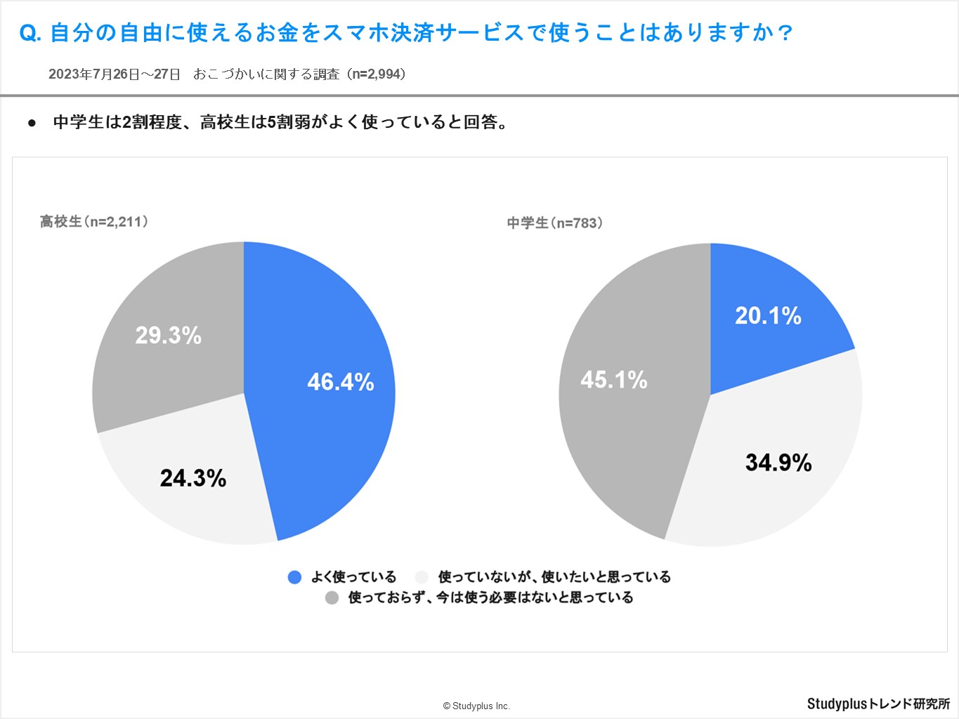中学生は約2割・高校生は5割弱がスマホ決済を利用、スタディプラスの調査(7/9)
