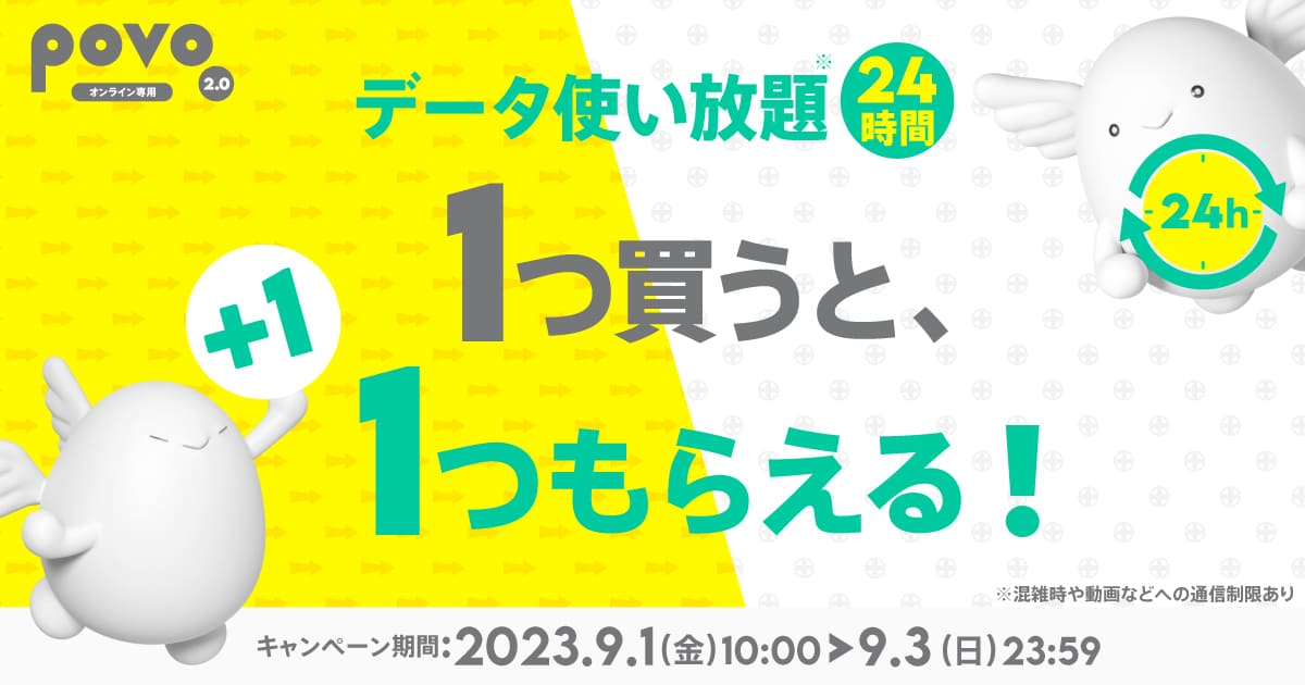 povoの「120GB/365日」期間限定トッピング、10月末まで購入可能に