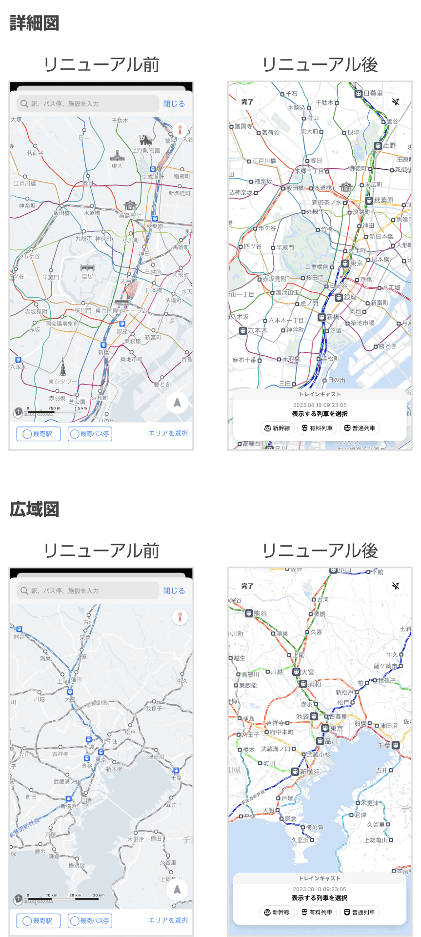 iOS版「Yahoo!乗換案内」、鉄道の遅延や見合わせが地図で分かる「運行情報キャスト」