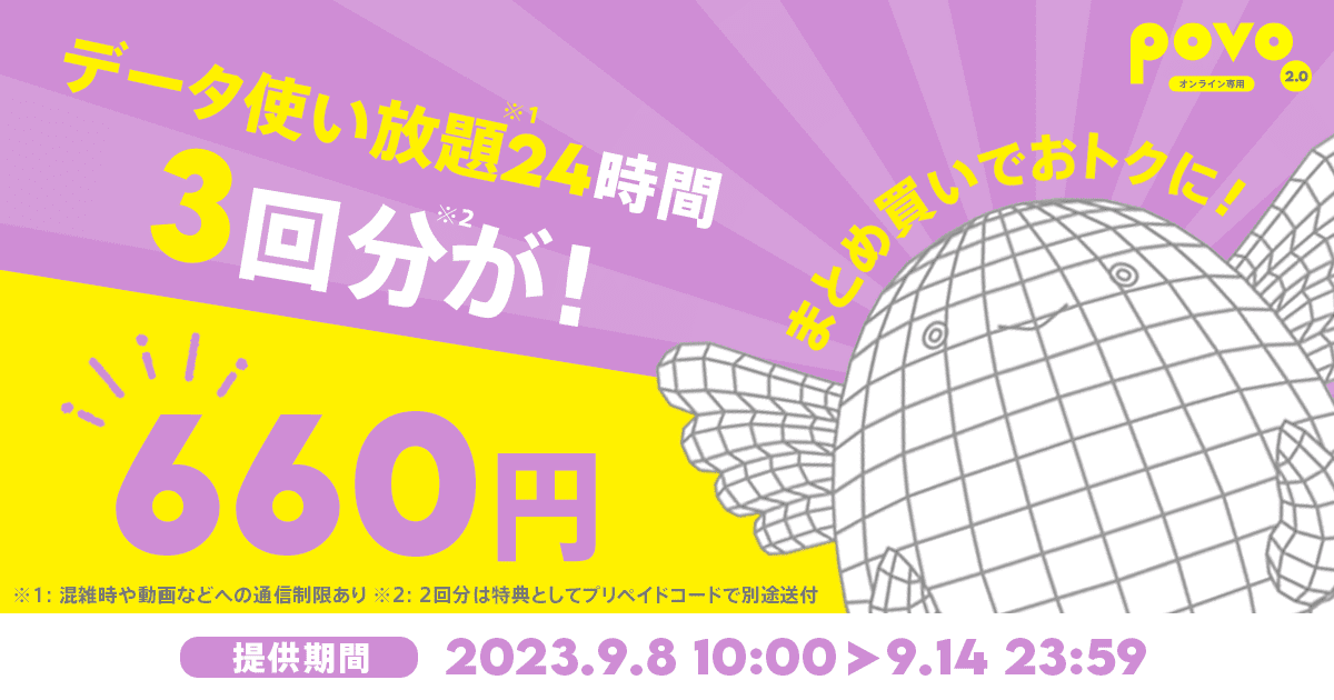 povo、「データ使い放題」2回→3回になる期間限定トッピング