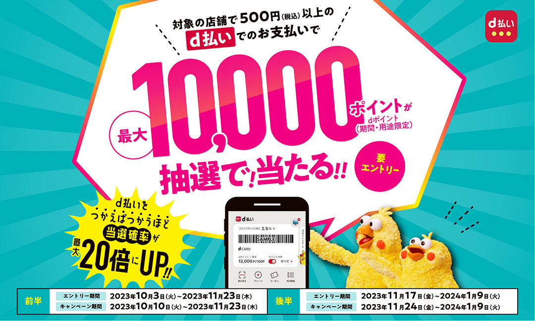 ドコモが「dポイント」「d払い」11月のキャンペーンを発表、ノジマで全額還元の抽選など