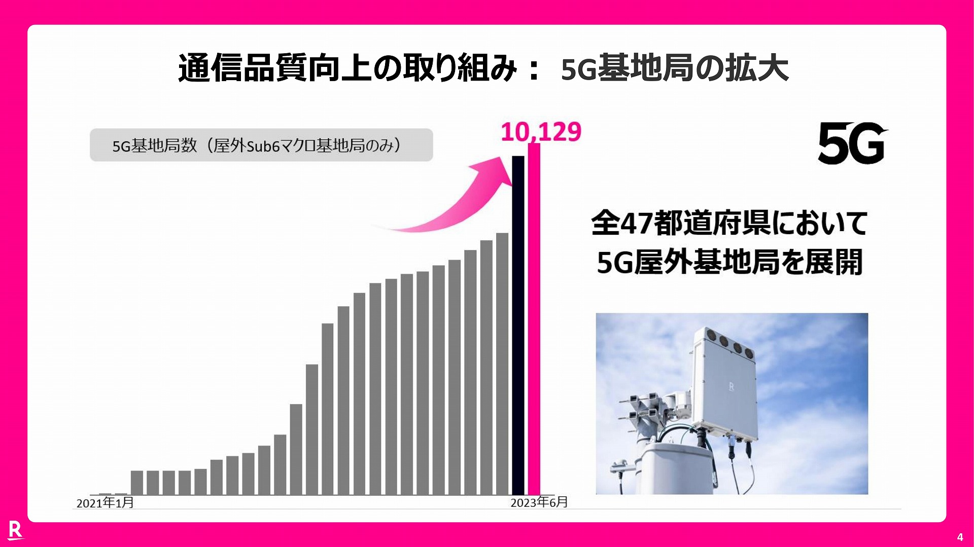 • 楽天モバイル、2023年度中に基地局6万超、人口カバー率は99%超へ
