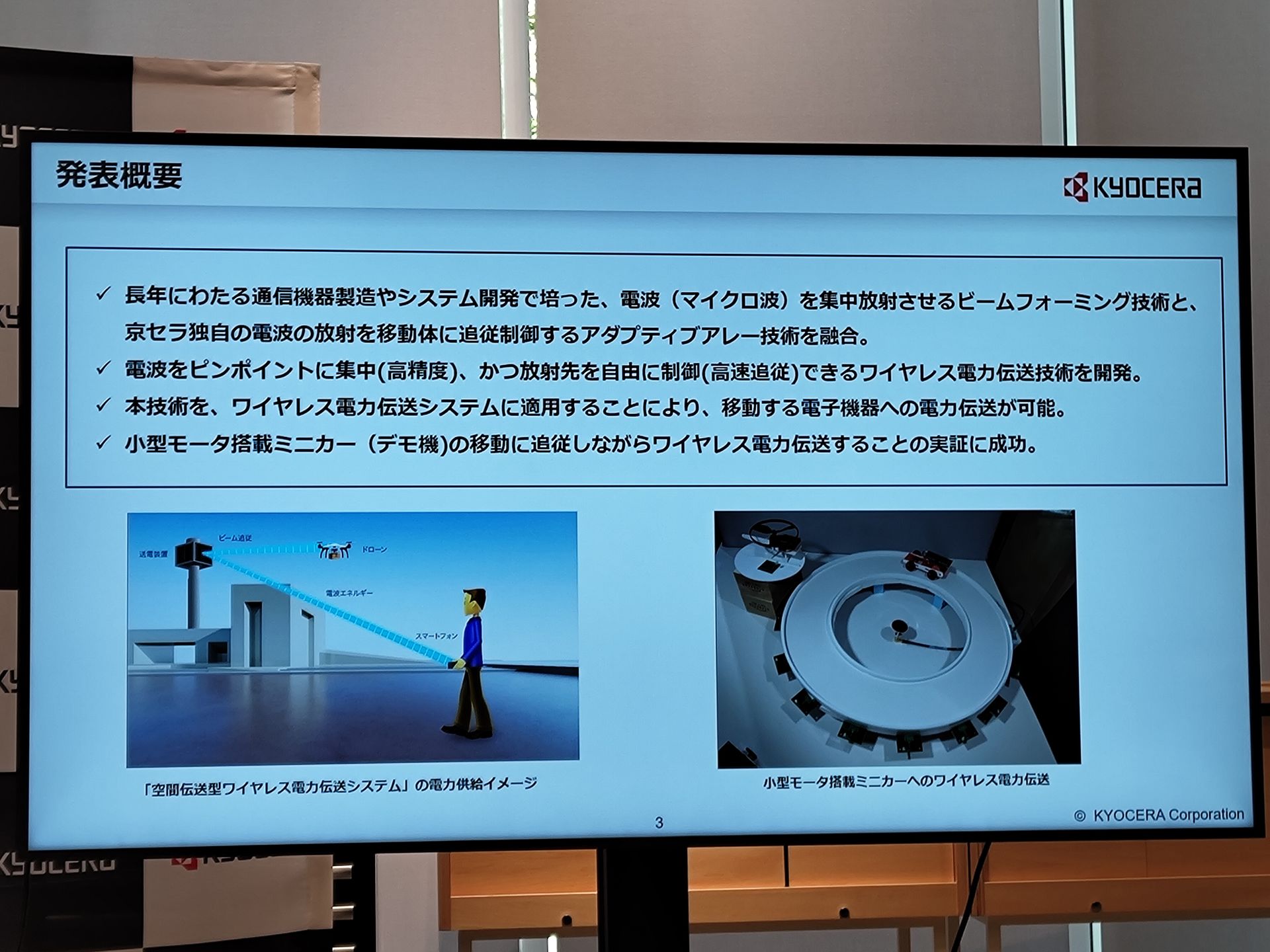 • 京セラ、スマホやドローンにワイヤレスで電力を送る基礎技術を開発
